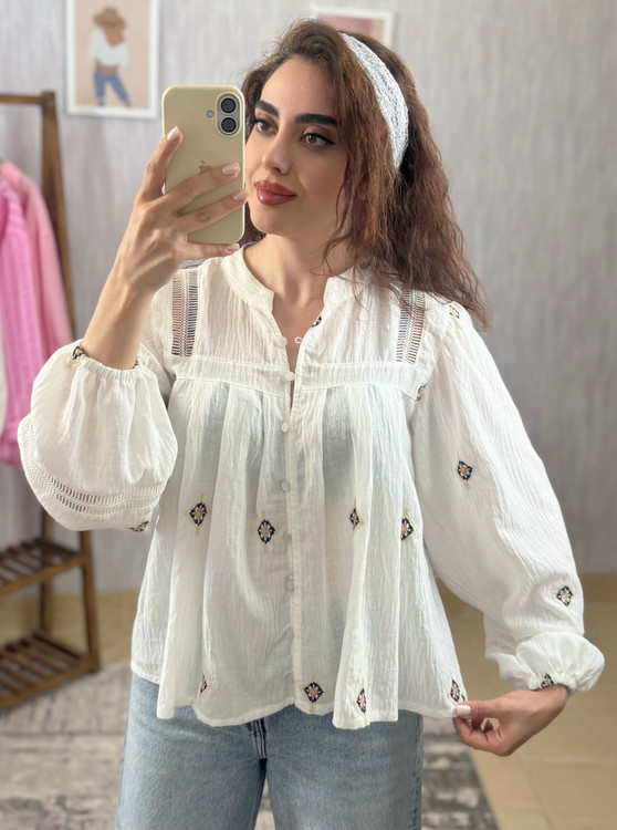 شومیز زنانه ترک برند robbin گلدوزی شده با مدل کیوت و دخترونه